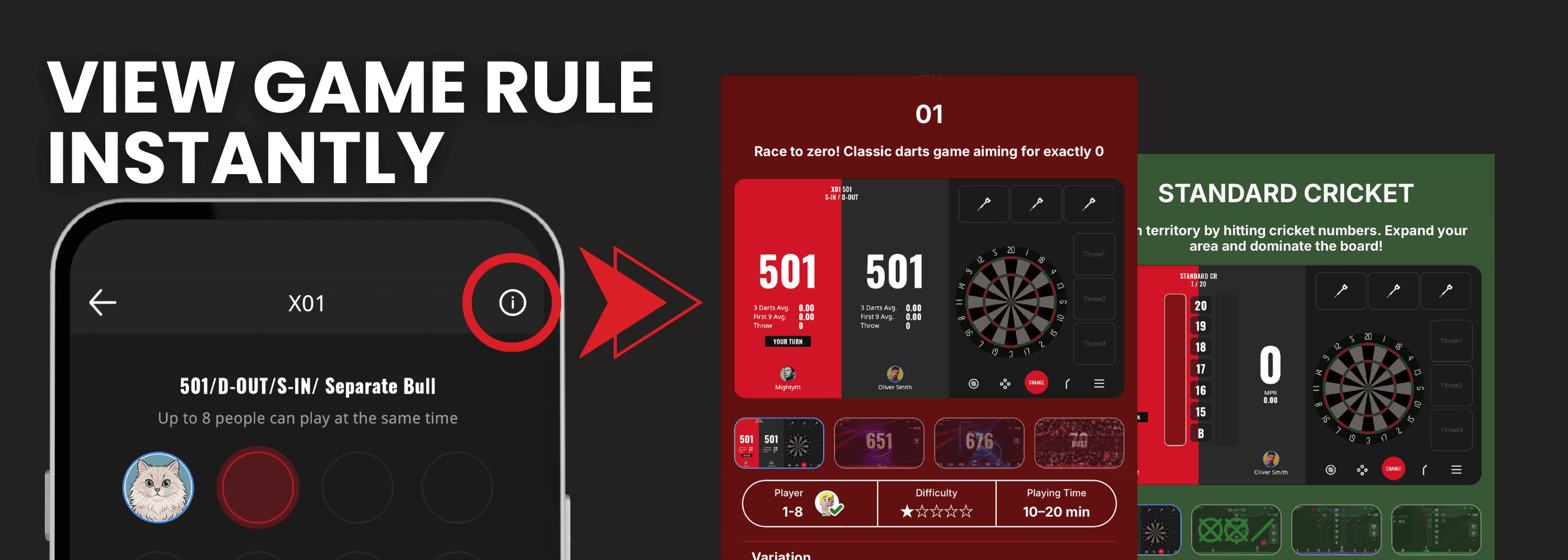 ゲームセレクト画面右上のインフォメーションボタンから、ゲームルールやオプションの詳細が確認できるようになりました。